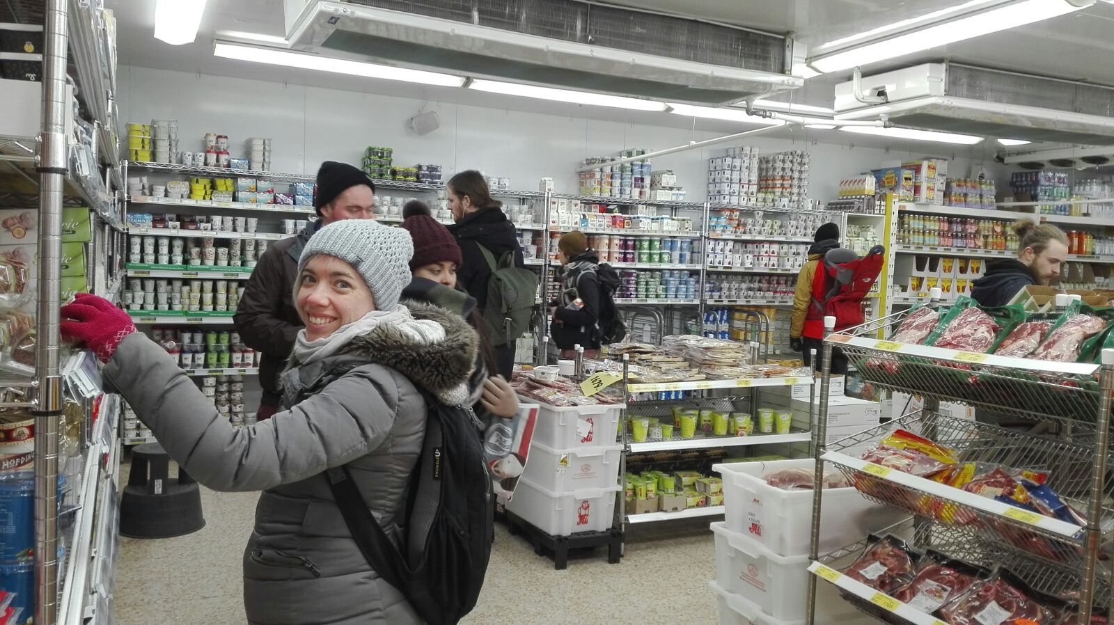 Lo primero que hacemos es ir a comprar algo de comida. Hay muchas tiendas en las calles principales. En los supermercados, muchas verduras vienen de España y son bastante caras ( una lechuga son 3€). Hay cámaras frigoríficas en donde están los artículos perecederos, son habitaciones enormes con refrigeradores en el techo. Hemos entrado con el abrigo y el gorro, aquí hace mas frio que en la calle!
