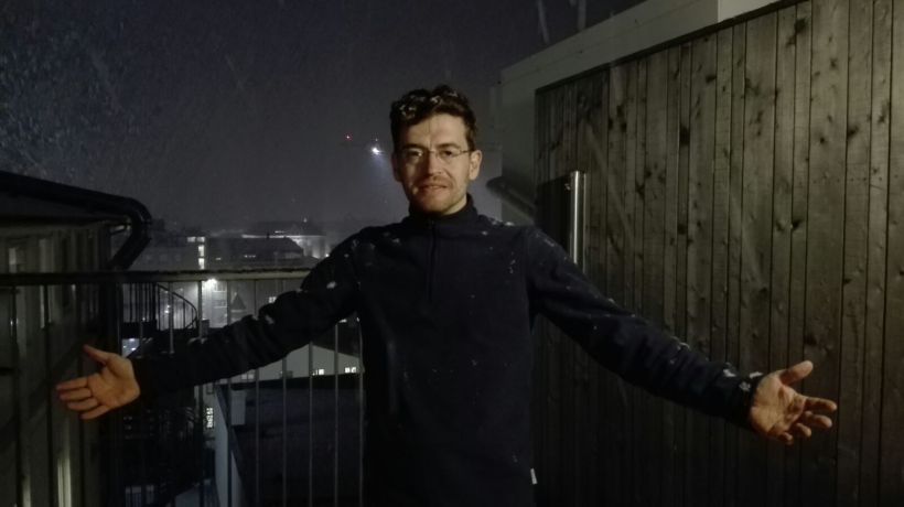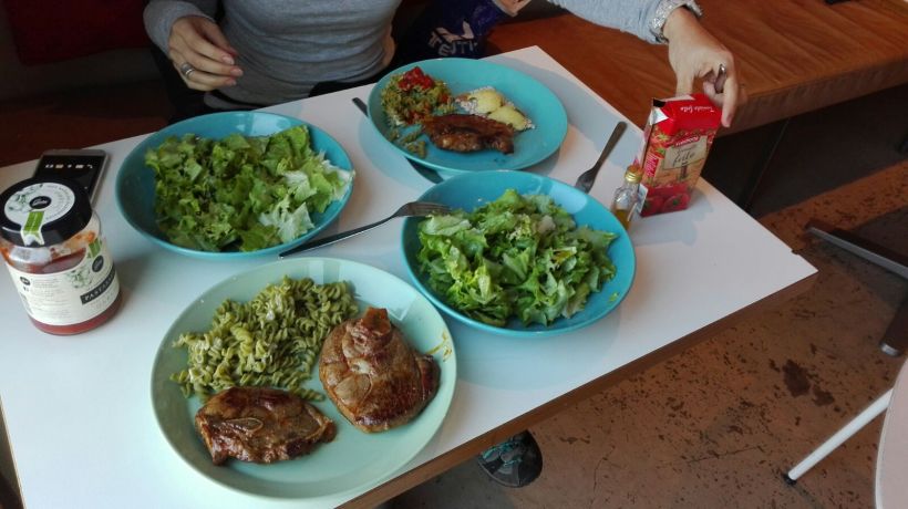 Una vez en el Hostel nos preparamos la cena, mientras vemos como nieva.