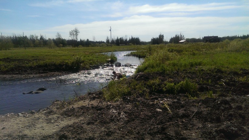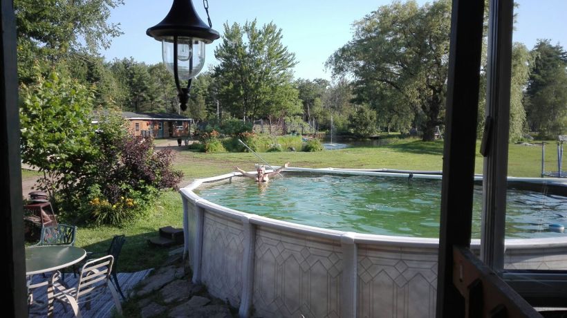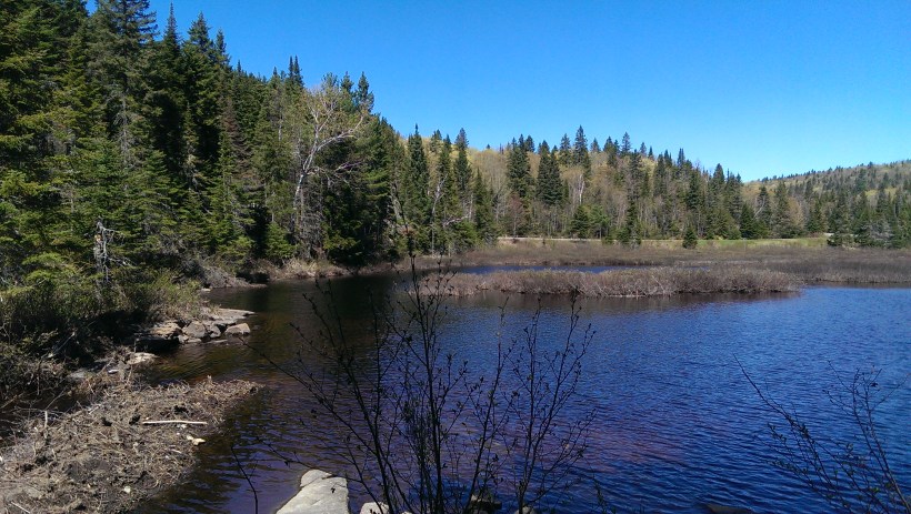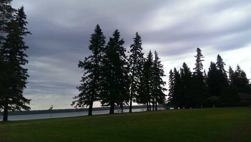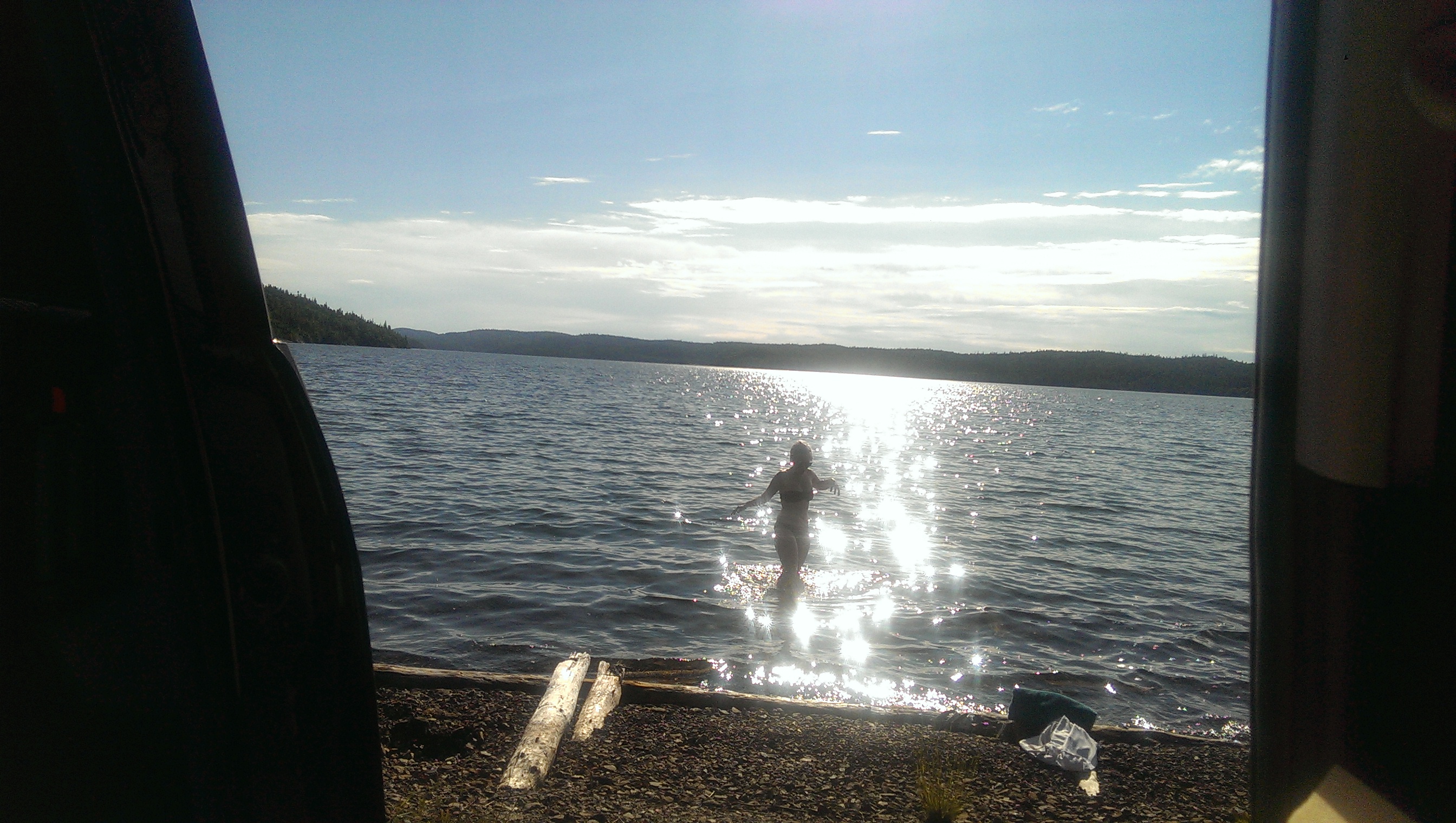 Hoy hemos ido al lago de los “Mosquitos”, lo cierto es que eran las 6 de la tarde y los canadienses están cenando a esas horas. Es un lago pequeñito y está rodeado de arboles. Nos bañamos solos en un agua muy muy fresquita.