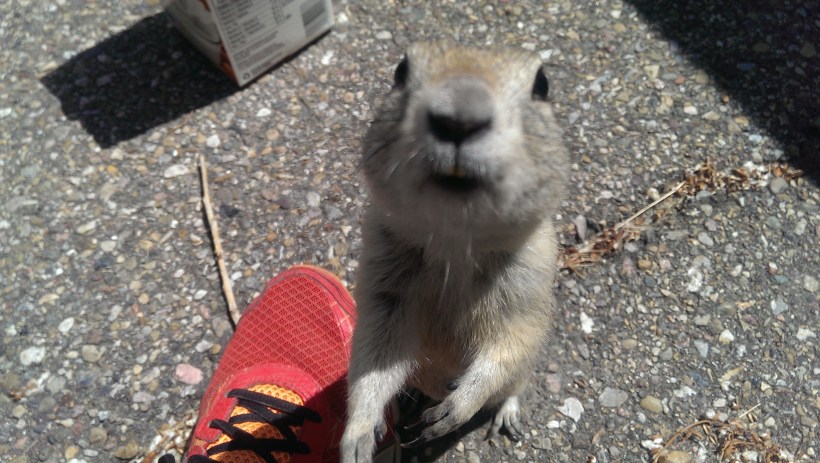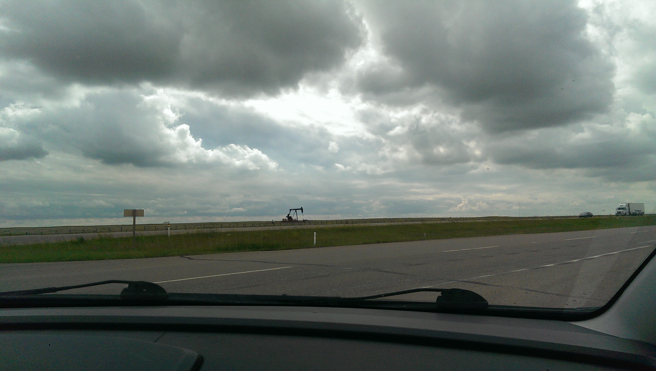 Empezamos viaje de nuevo. Cientos de kilómetros de recta con praderas a los lados, con vacas, perros de la pradera y pozos de petróleo.