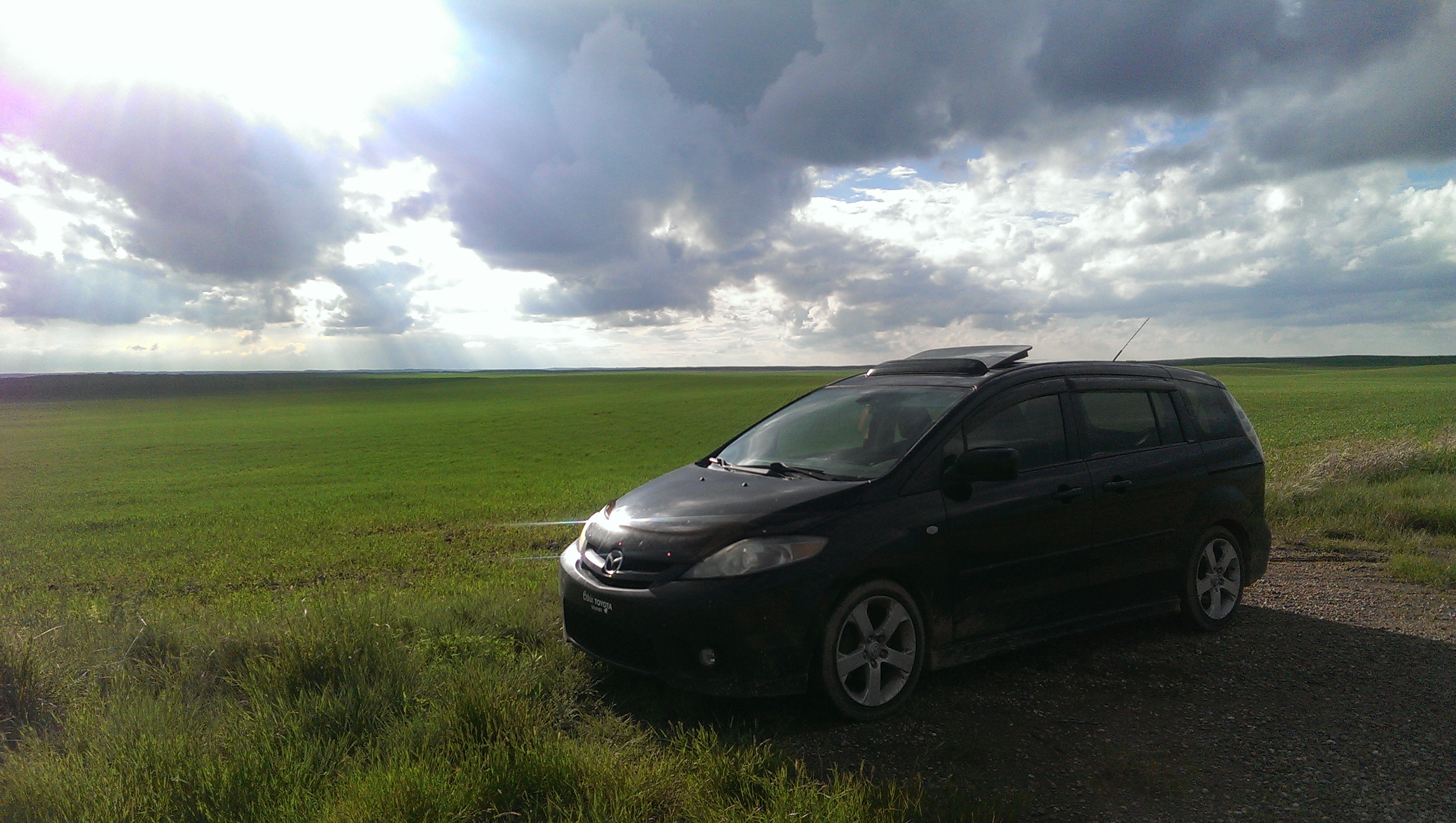 Es un paisaje pintoresco con vacas y los pozos de gas. La ciudad principal aquí se llama “Medicine Hat” y es la “ciudad del gas”, esta todo lleno de pozos de gas y refinerías, parece Texas o el golfo pérsico. A dormir entre estas laderas y unos campos sembrados que parecen infinitos.