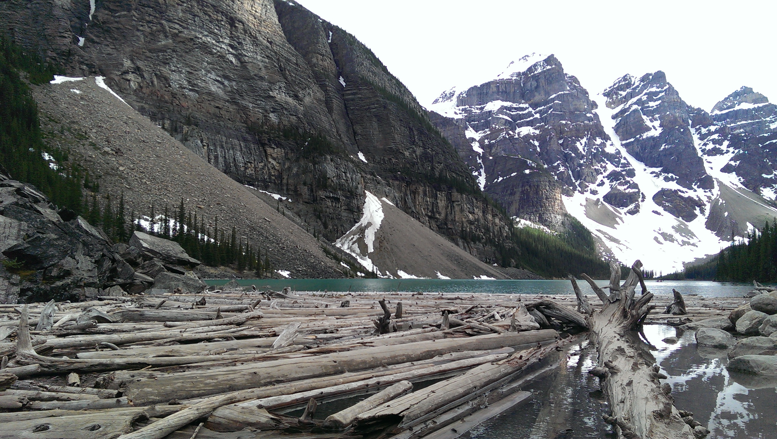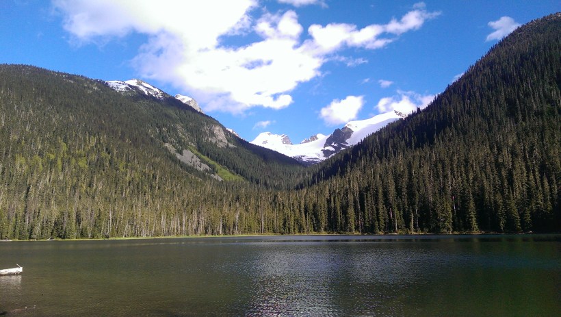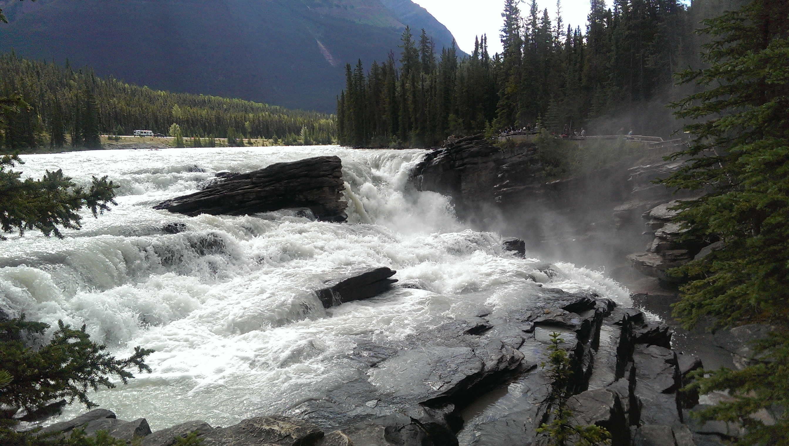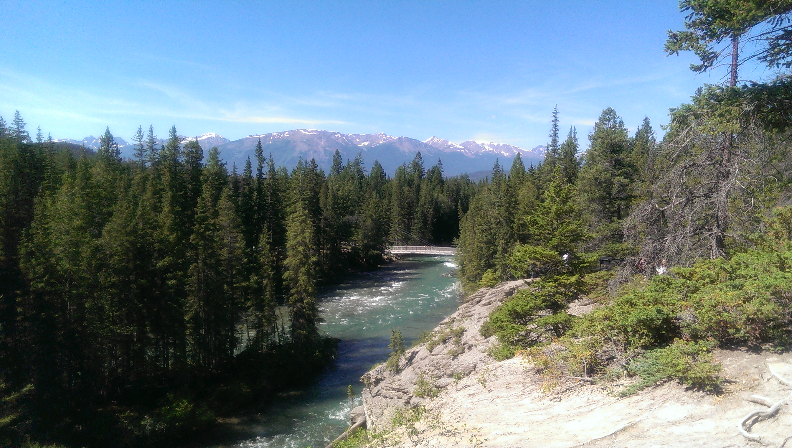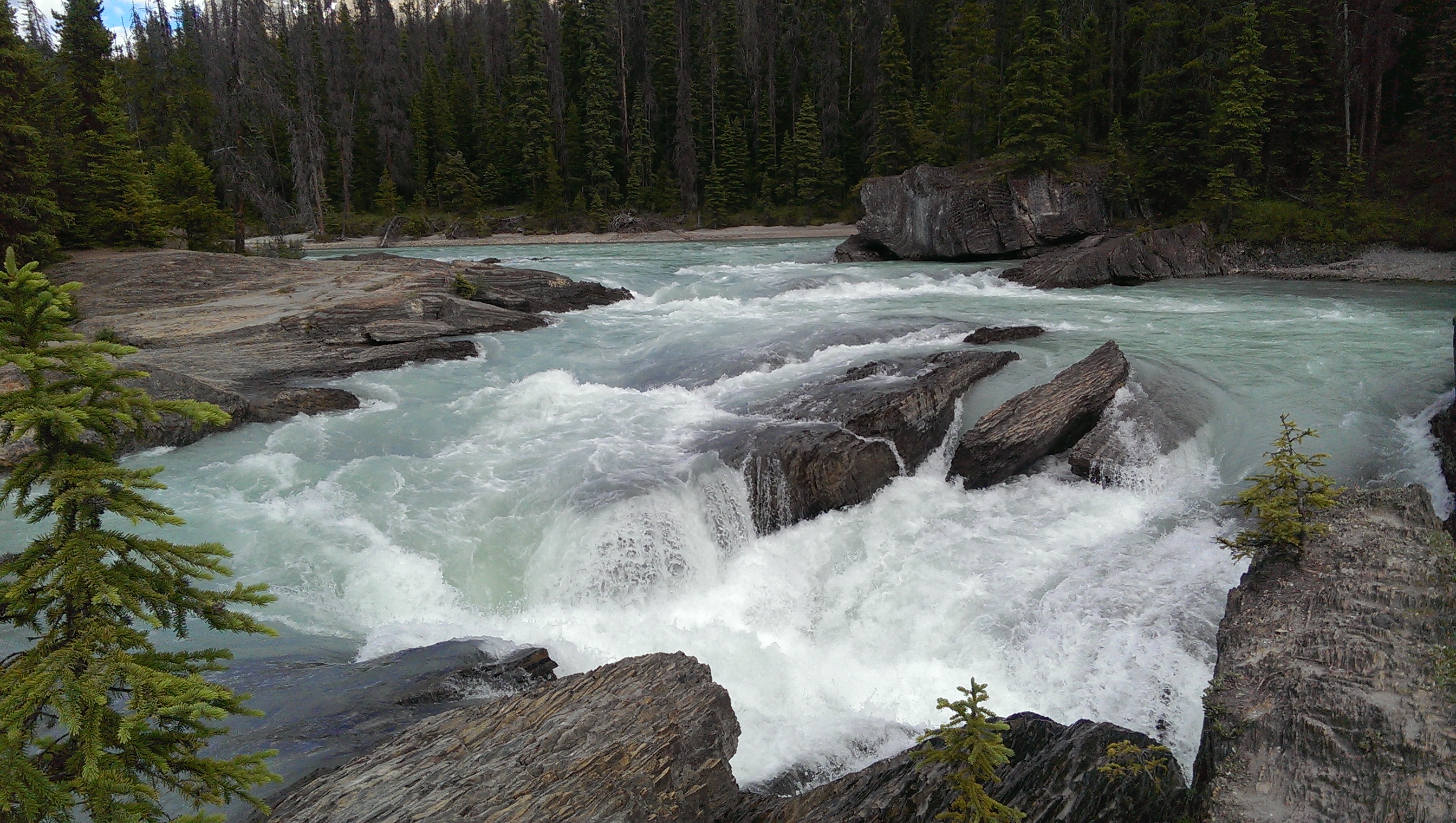Por la tarde nos vamos a “Field”, un pueblito en el parque natural de “Yoho”, ya en la Columbia Britanica. Vamos a ver un puente de roca natural sobre el rio, muy impresionante. Bajamos hasta la intersección de cuatro ríos y vemos el lago Esmeralda (un poco turístico y explotado, hay como 100 apartamentos alrededor).