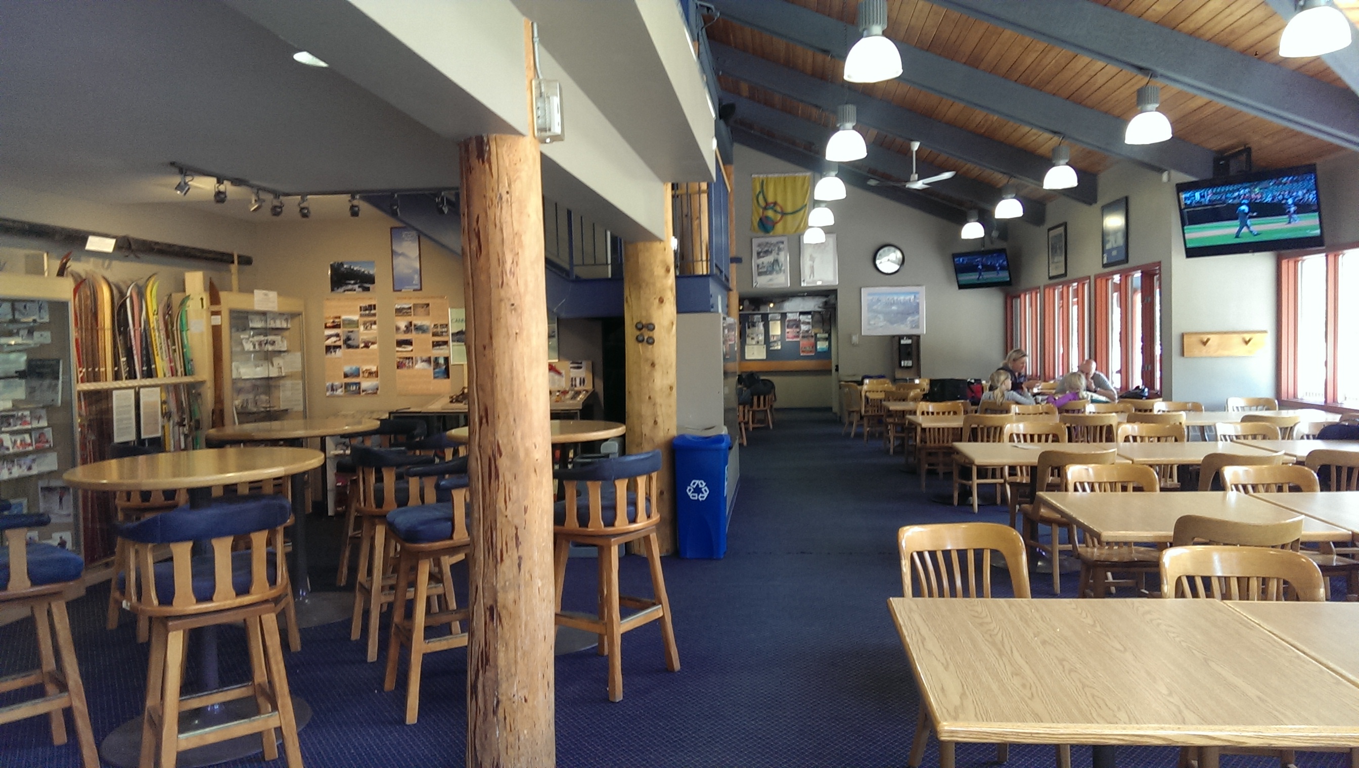 Pasamos esta mañana en el centro de esquí nórdico, escribiendo blog y comiendo. Es un sitio mu agradable, tiene duchas por un dólar y buenas instalaciones. Hay medallas de olimpiadas y fotos, esquís…..todo muy montañero.
