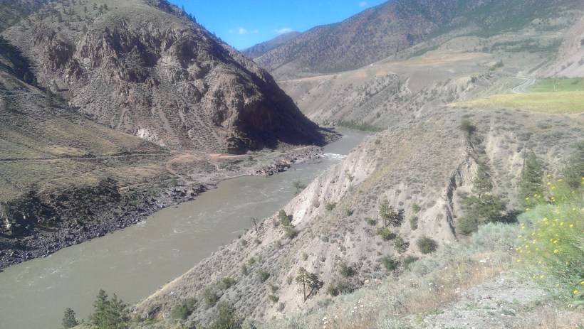 Ahora hemos entrado en el auténtico Oeste. Tomamos la carretera 97, la de los buscadores de oro “gold rush”. Empieza a ser muy árido y con laderas erosionadas por la lluvia. El río, muy caudaloso, pero de color marrón, muy lejos de las aguas cristalinas de los días anteriores.
