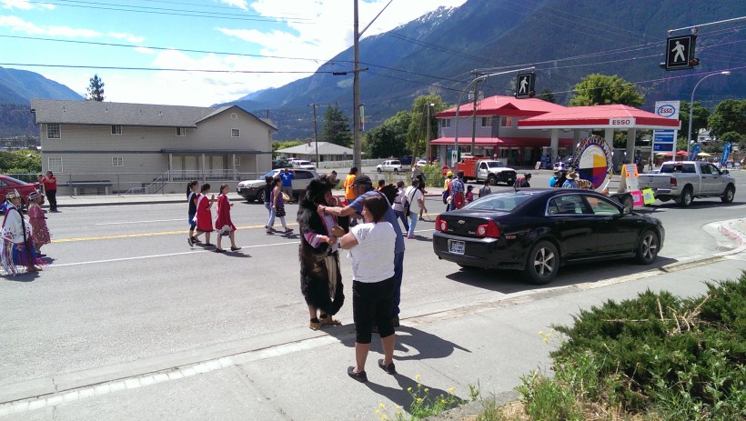Así ha sido en todos los puntos del país en que hemos visto indios. La Reina de Inglaterra los protegío y aquí no los exterminaron como en EEUU, pero su cultura es tan primitiva que pasarón de ser cazadores nómadas a estar en un país desarrollado. Están fuera de la sociedad. Hemos visto una especie de procesión de celebración de su fiesta por las calles del pueblo, después hacen una comida, pero no asisten muchos hombres blancos. En cierto modo parecen a los gitanos en España, viviendo sus tradiciones al margen de la sociedad.