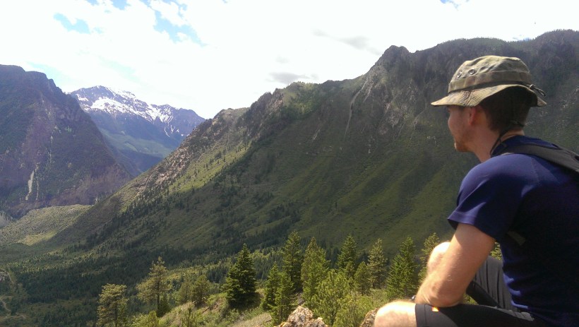 Nos informan de una senda que merece la pena hasta la “Red Rock” y procedemos a subir. Después de hora y media de subida por el bosque llegamos a un mirador hecho de roca roja. Se ve todo el valle, como suele pasar en estos sitios. Es muy bonito, son valles que aún tienen mucha nieve en las cumbres y las laderas son muy escarpadas.