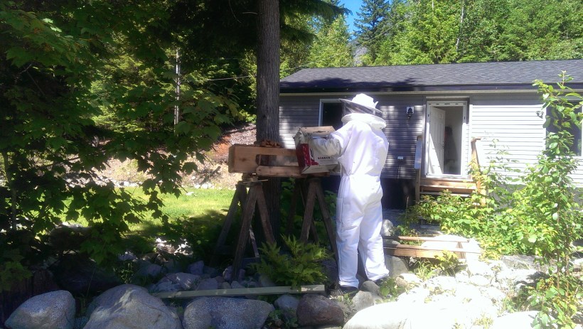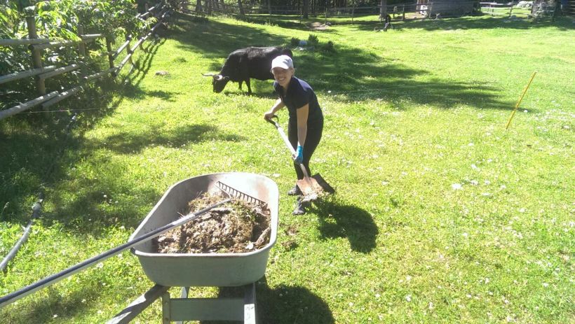 El primer dia en la casa hemos disfrutado mucho. Primero con la vista desde la cama, recolectando fresa -a continuación-, preparando el jardín, viendo una mudanza de una colonia de abejas a otro panal, jugando con los niños e incluso paleando mierda de las vacas y los pollos. El paisaje es tan maravilloso que es el sitio ideal para nosotros. Una joven pareja, él, australiano de Sídney y ella Canadiense de Alberta. Decidieron mudarse aquí a abrir su negocio y vivir en, y de la naturaleza. Es en esencia el proyecto que tenemos nosotros.