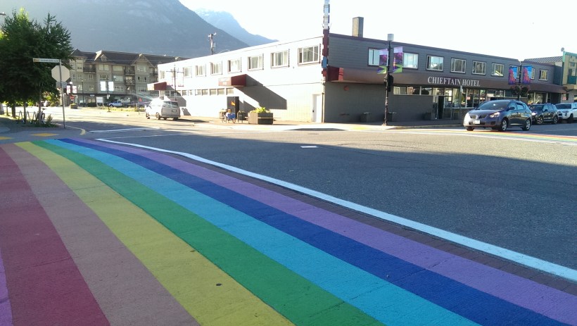 Llegamos a Squamish (suena a programa de verano en la tele), un pueblo, una zona, una nación india, que han sobrevivido a los blancos. Un pueblo bajo una peña enorme, todo muy moderno y ya en la costa.