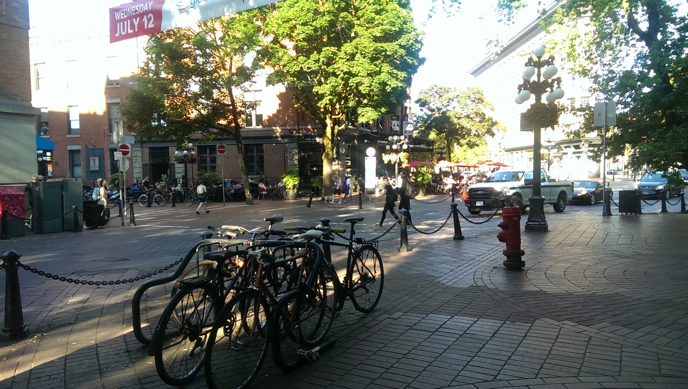 Aquí hay ambiente, no es lo que veníamos viendo. Gente en la calle, caminando, bares y tiendas abiertos hasta las 7 u 8 de la tarde, mucha bicicleta. Un ambiente más europeo en general, bueno, menos americano. Sorprende la diversidad cultural y racial de la ciudad. Hay muchísimo asiático, yo diría que casi la mitad de la población son asiáticos de 1º o 2ª generación. Sobre todo japoneses y coreanos.