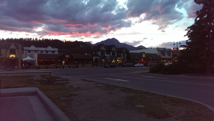 Dormimos aparcados en una calle tranquila de Banff. Esperemos que no venga muchos por aquí, hoy es viernes noche.