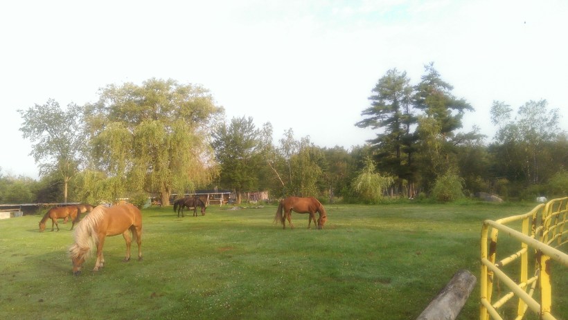 Todo el día entre estas praderas, nos detenemos en las afueras de una granja y hacemos algo de deporte por las pistas aledañas.