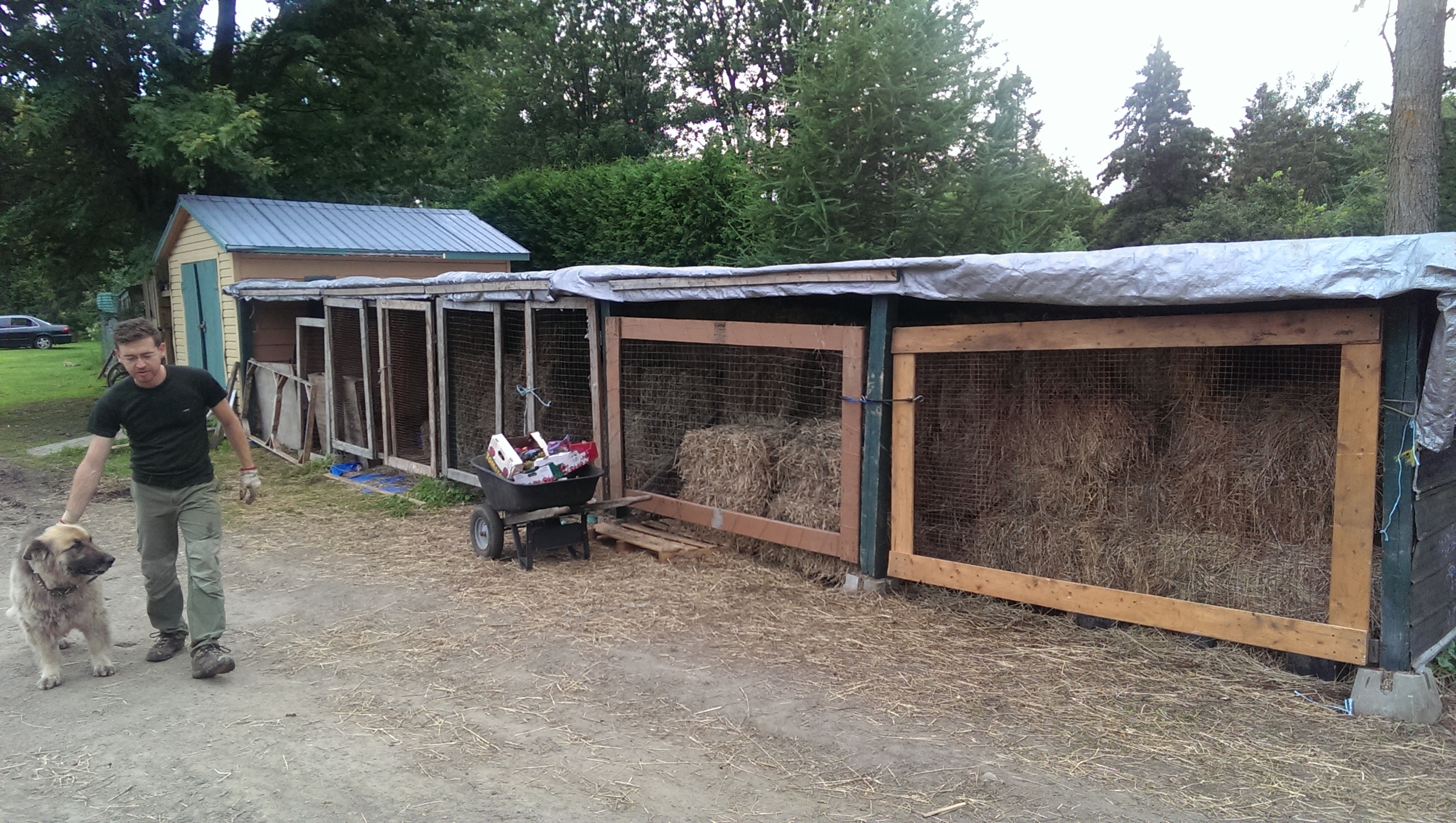 Hemos construido un vallado perimetral alrededor de una huerta que tiene la dueña. Todo artesanal, con arboles cortados en el bosque (hasta ahora tengo suerte y no he cortado ninguno vivo). Nos ha llevado 2 días pero ha quedado bastante bien.